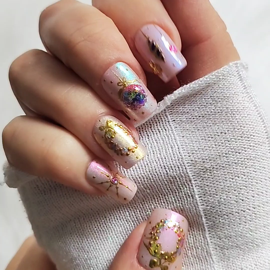 Scopri la magia delle feste con le nostre unghie finte riutilizzabili Pastel Christmas. Ogni unghia è una creazione unica, impreziosita da motivi 3D natalizi: alberi di Natale, ghirlande, palline e fiocchi di neve. Lo sfondo multicolore scintillante, impreziosito da glitter e oro, cattura la luce per un effetto scintillante. Perfette per aggiungere un tocco di magia al tuo look natalizio, queste unghie combinano l'eleganza pastello con dettagli sofisticati. Riutilizzabili e facili da applicare, ti faranno brillare durante tutte le tue celebrazioni.